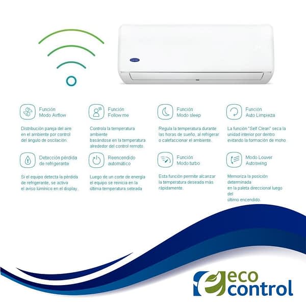 La gran innovación de este modelo reside en su corazón: el uso del Refrigerante Ecológico R-32. Mientras que la mayoría de los equipos aún utilizan el estándar anterior (R-410A), Carrier da un paso adelante con este gas puro de última generación.