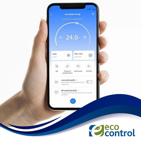 Control por Voz (Google Home y Alexa): Imagina estar cocinando, leyendo o simplemente descansando en el sofá y poder decir: “Ok Google, encender Aire Midea a 24 grados”. La compatibilidad nativa con los asistentes de voz más populares del mercado te permite gestionar el clima sin mover un dedo.