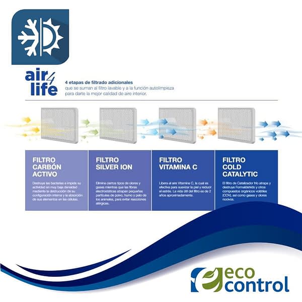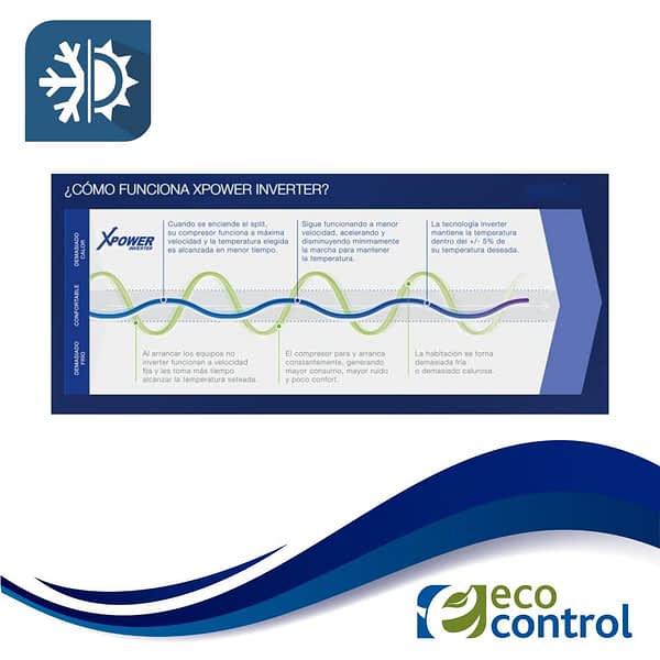 Tecnología Inverter: El compresor ajusta su velocidad continuamente para mantener la temperatura estable, asegurando un confort sin fluctuaciones y un ahorro energético significativo.