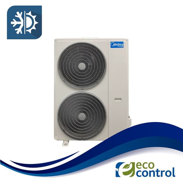 La unidad exterior ha sido diseñada pensando en la realidad urbana. A diferencia de las condensadoras tradicionales de descarga vertical (tipo “tacho”) que ocupan mucho suelo, este modelo cuenta con Descarga Horizontal. Esto la hace más compacta y delgada, permitiendo su instalación en balcones estrechos, pasillos técnicos o colgada en fachadas mediante ménsulas, facilitando el acceso para mantenimiento y preservando la estética del edificio.